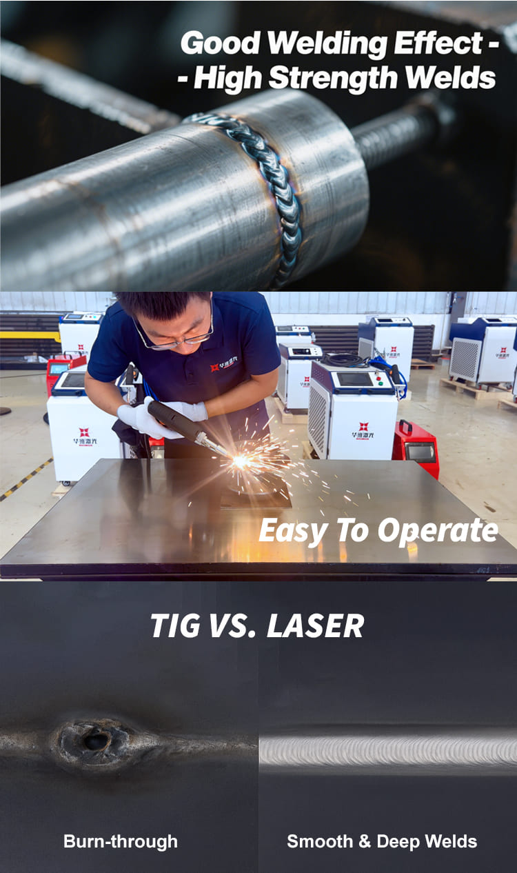 ★Быстрая скорость и небольшая деформация: скорость сварки в 3-5 раз превышает скорость аргонодуговой сварки, что позволяет выполнять точную сварку.
