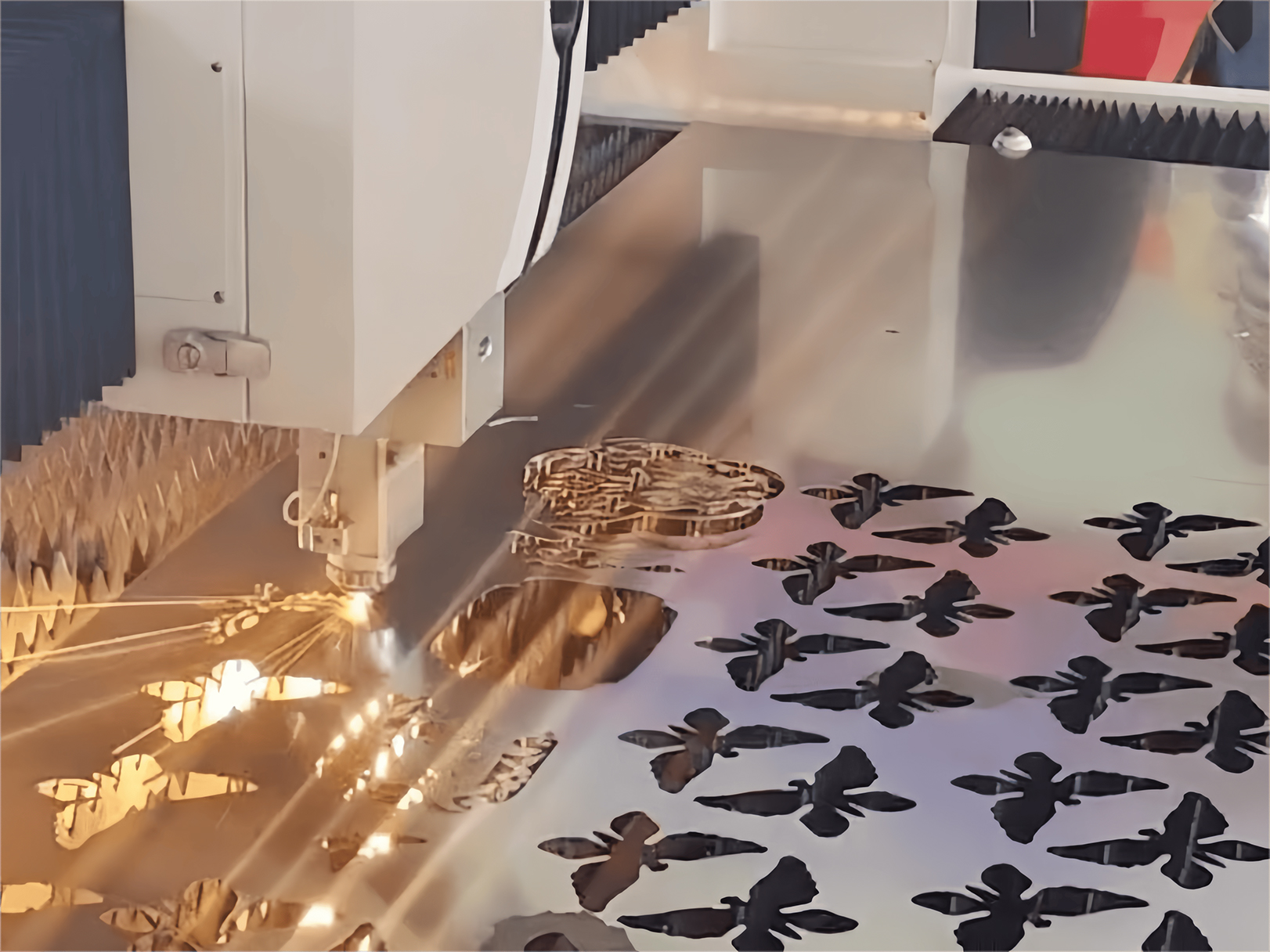 Средняя и толстая резка пластин:Для пластин средней толщины можно использовать как положительный фокус, так и отрицательный фокус. Положительный фокус требует достаточной лазерной мощности и вспомогательного давления газа. При использовании негативного фокуса фокус обычно расположен в 1/3 до 1/2 толщины пластины, обеспечивая более стабильную резку и уменьшая шероховатость на поверхности среза.